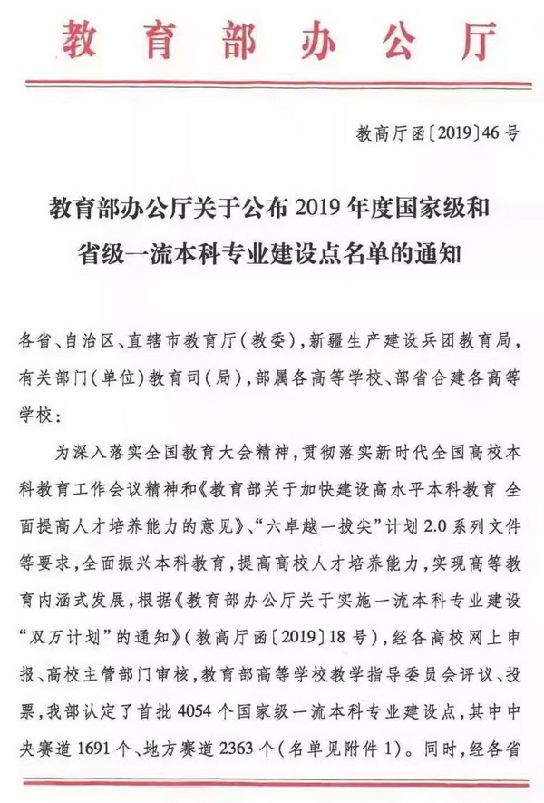 2019年,教育部启动了一流本科专业建设“双万计划”,三年内,建设10000个左右国家级一流本科专业点和10000个左右省级一流本科专业点。本次评选是教育部实施的首批评选,共认定了4054个国家级一流本科专业建设点,6210个省级一流本科专业建设点。