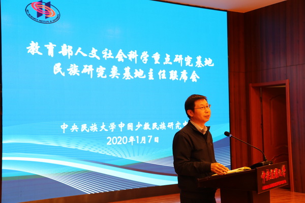 谭方正代表教育部社会科学司对会议的召开表示祝贺,他表示召开“教育部人文社会科学重点研究基地民族研究类基地主任联席会”是民族研究工作中一件值得纪念、有意义的事情,这是首次民族研究类的基地主任会议,它意味着民族研究的国家队集结了,大家手拉手,心连心,共同开创民族研究工作的新篇章。