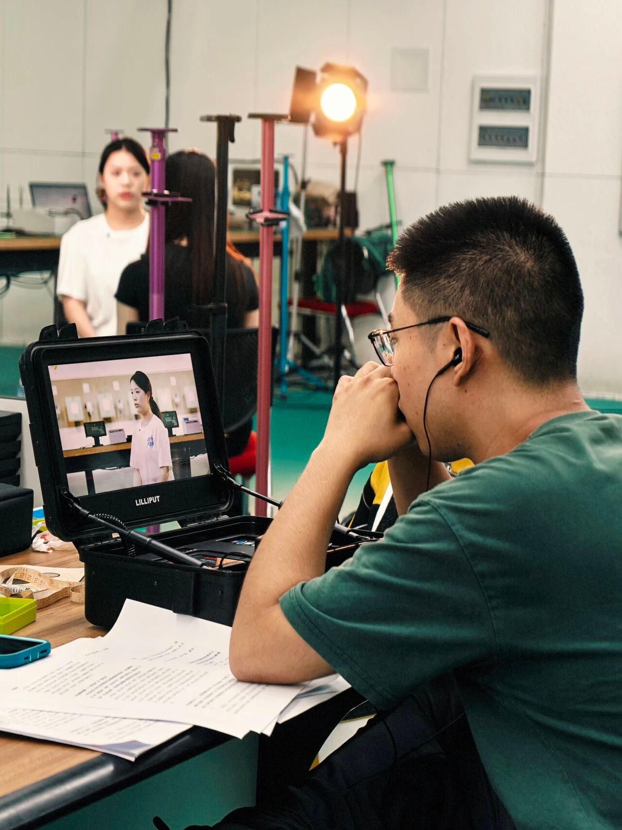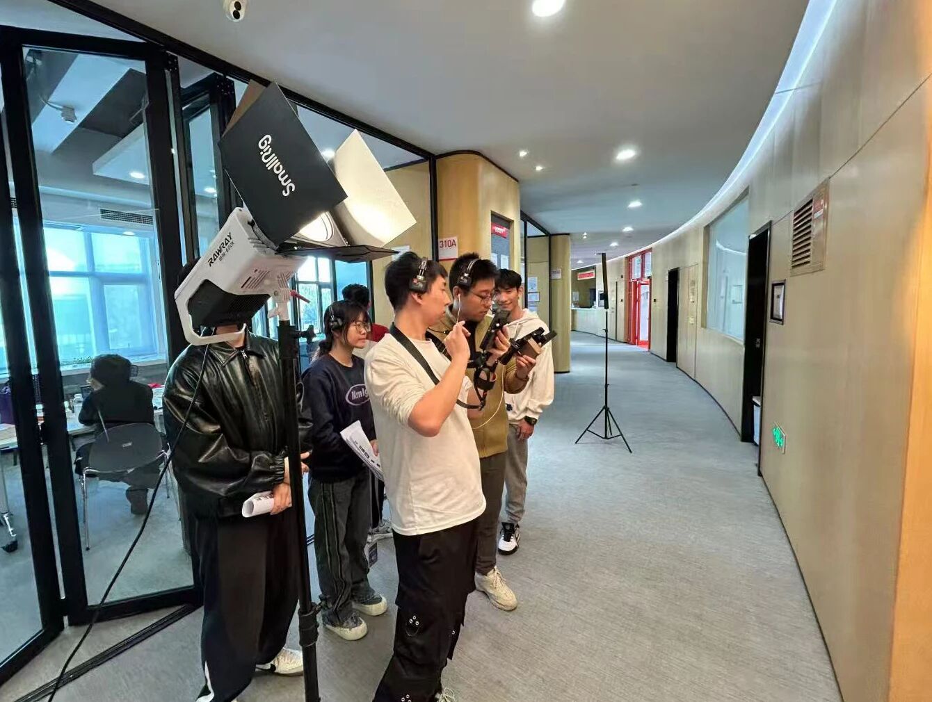 “天语老师经常用轻量化、较低成本的设备实现最好的画面效果。看似不经意间布置的一盏灯光,就能给画面带来指数级飞跃。在拍摄过后,他还会带领团队整体复盘,对拍摄中出现的问题进行分析,为我们提供更多的拍摄经验。”2023级戏剧与影视专业硕士张天河,在日常实践后这样说到。